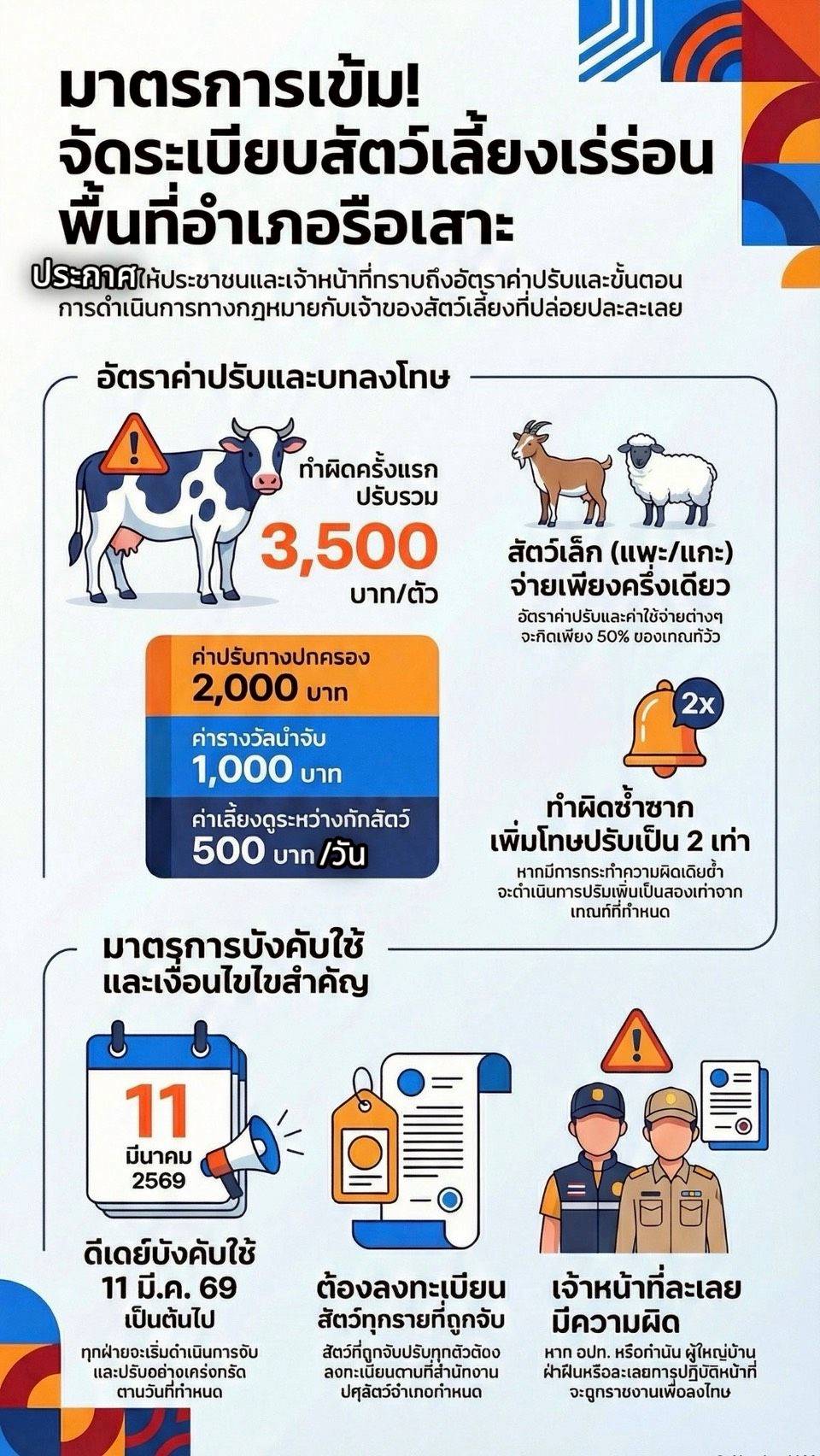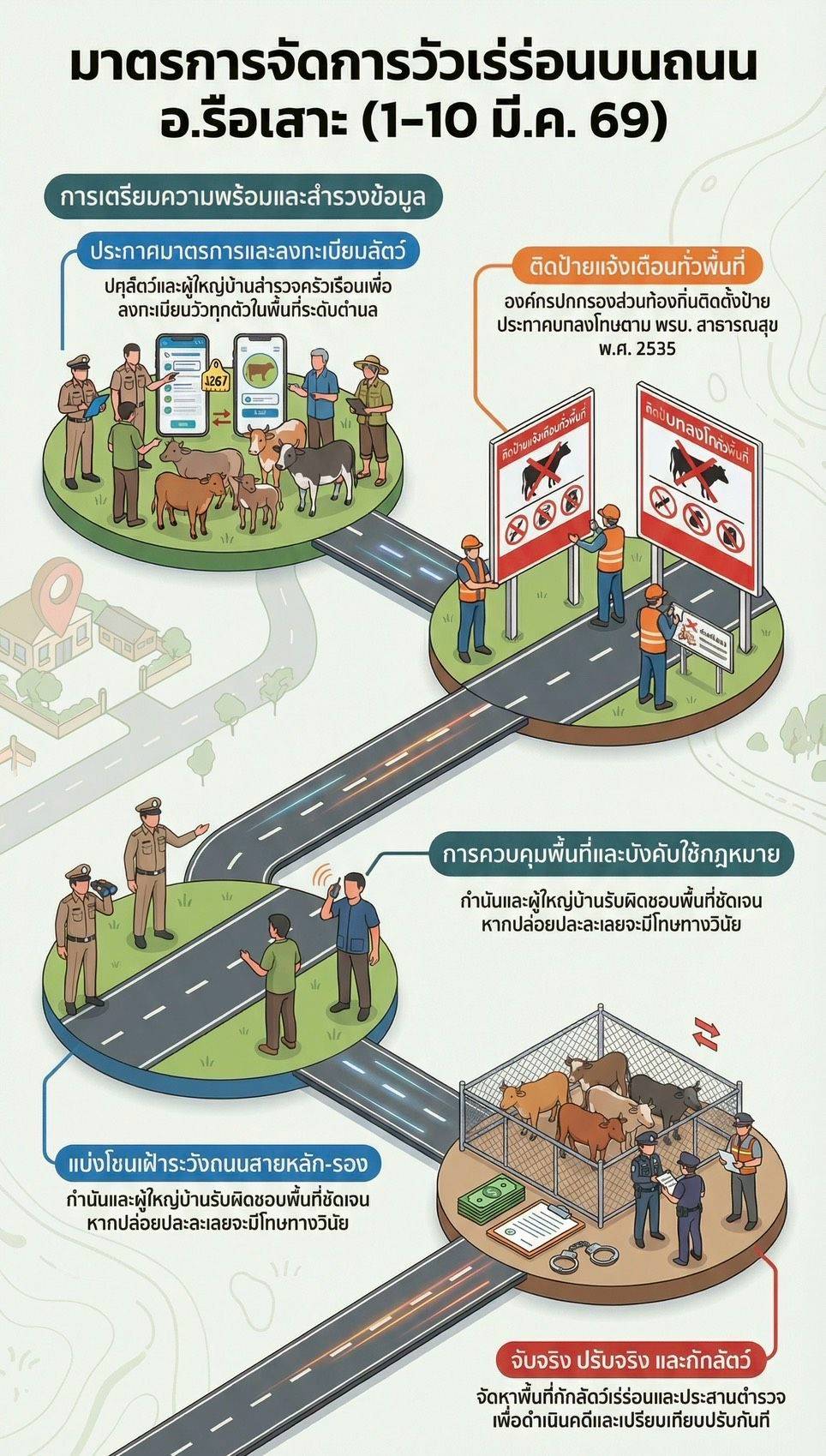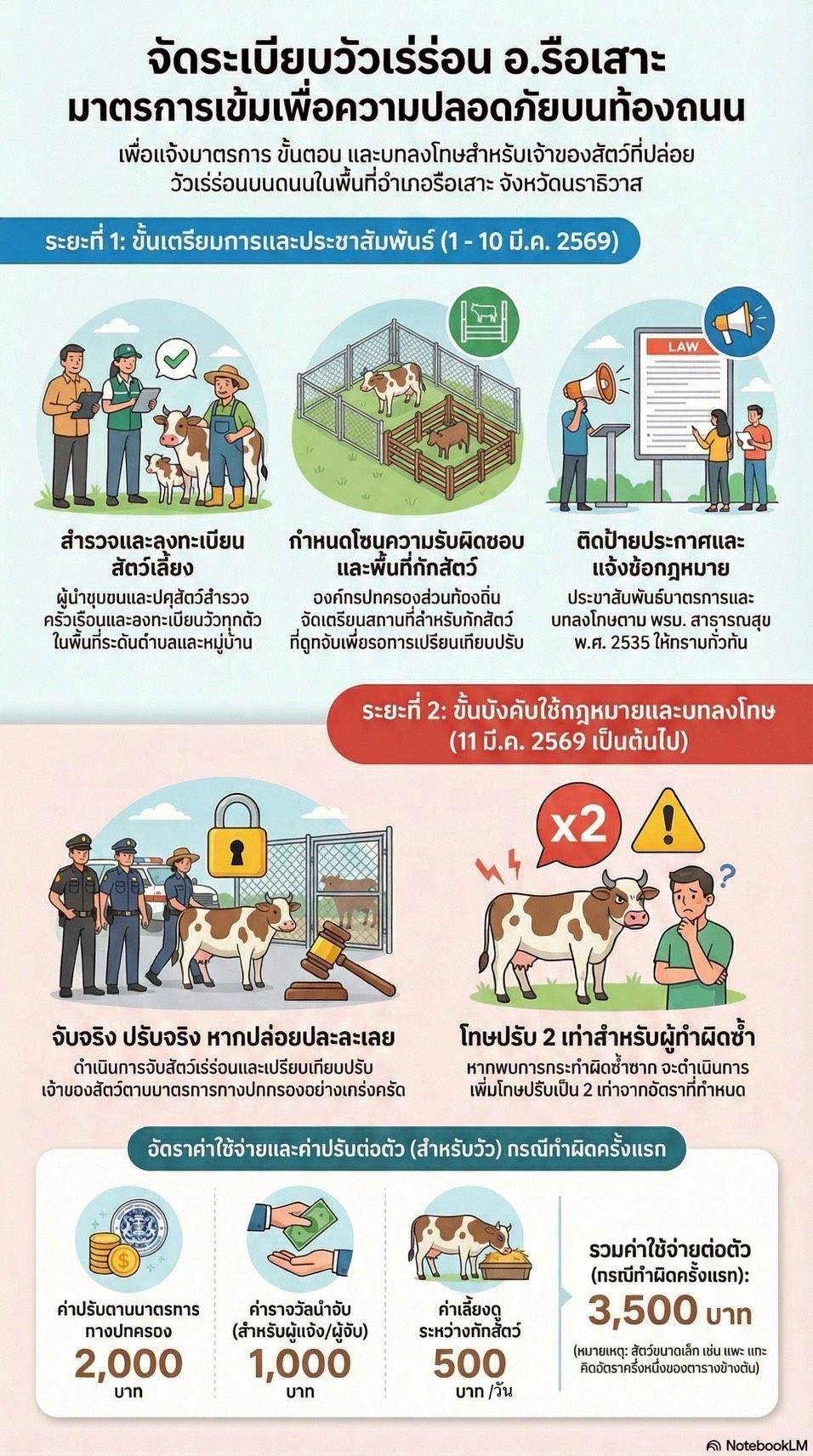 ประกาศอำเภอรือเสาะ เรื่อง มาตรการแก้ไขปัญหาเลี้ยงวัวเร่ร่อนบนถนน อ.รือเสาะ จ.นราธิวาส