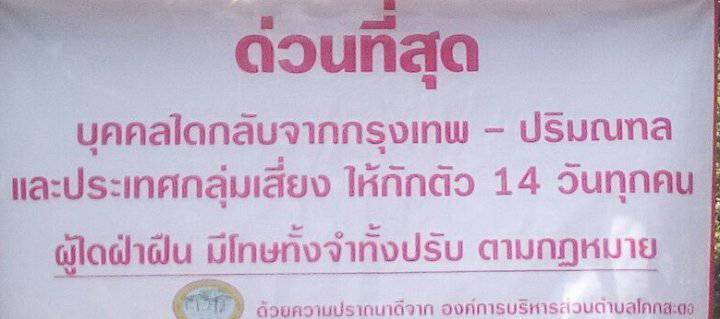 ประกาศ ด่วนที่สุด บุคคลใดกลับจากกรุงเทพ-ปริมณฑลและประเทศกลุมเสี่ยงให้กักตัว 14 วันทุกคน ผู้ใดฝ่าฝืนมีโทษทั้งจำทั้งปรับ ตามกฎหมาย
