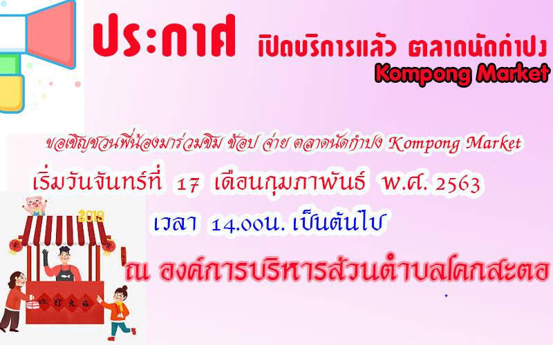 ประกาศ เปิดบริการแล้ว ตลาดนัดกำปง ขอเชฺิญชวนพี่น้องมาร่วม ชิม ช้อป จ่าย ตลาดนัดกำปง kampong Market